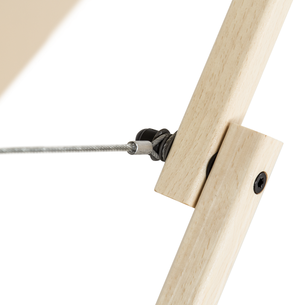Дополнительные усилители в раме каркаса; эластичный шнур предохраняет натяжной трос от попадания между секциями во время складывания.